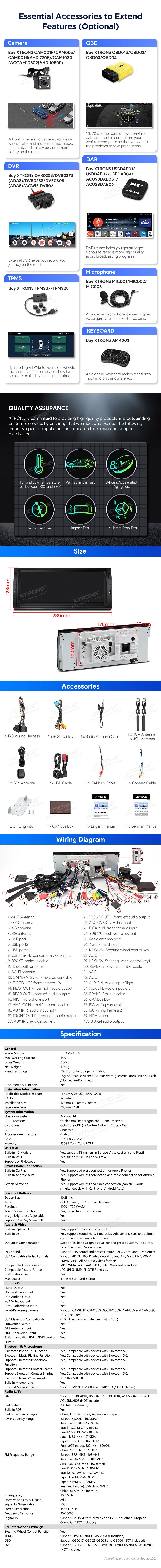 Pokud má původní rádio vašeho auta 4,3" nebo 7" displej s 12kolíkovým konektorem nebo máte navigační jednotku umístěnou v zadní části auta, musíte si objednat extra 6m prodlužovací kabel pro usnadnění instalace. XTRONS EXL005 / EXL007 je kompatibilní. (viz. specifikace výrobce)