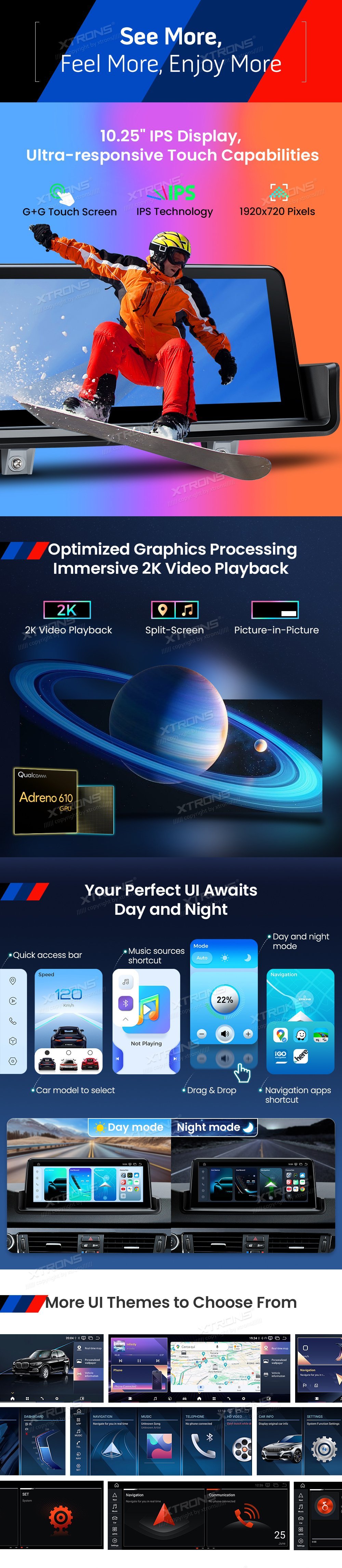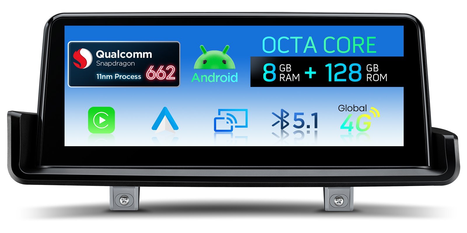 * Perfektně integrace operačního systému Android a vašeho původního systému * Výjimečný Výkon Zpracování, Další Úroveň In-Vehicle Zkušenosti - 11nm procesní technologie - Architektura Kryo 260 - 64 bit Architektura - Motor AI třetí generace * Uvolněte napájení s robustní pamětí a úložištěm (8GB + 112GB) * 10,25" IPS displej, ultra-responzivní dotykové možnosti - G + G Dotyková obrazovka a technologie IPS a 1920x720 pixelů * Optimalizované zpracování grafiky, pohlcující 2K přehrávání videa - Split-Screen & Picture-in-Picture * Inteligentní uživatelské rozhraní s denními a nočními režimy * Více motivů uživatelského rozhraní * Pokročilé CarPlay a Android Auto s inteligentním hlasovým ovládáním * Sdílet Obrazovku Telefonu Bezdrátově * Nejnovější Bluetooth 5.1 s Hi-Fi Audio přenosem * Integrovaná 4G LTE, Globální síťová kompatibilita * Dual-Band Wi-Fi, Rychlé a stabilní připojení * Původní funkce zachovány - ovládání iDrive - Tovární zesilovač - Originální CD přehrávač a rádio - Tovární Bluetooth - Zálohovací displej fotoaparátu - Podpora Ovládání volantu * Přesná navigační podpora ze všech čtyř satelitních systémů * Okamžitý přístup k obráceným obrázkům * Podpora přední a zadní AHD kamery * Základní příslušenství pro rozšířené funkce, včetně fotoaparátu, DAB, DVR, OBD, TPMS