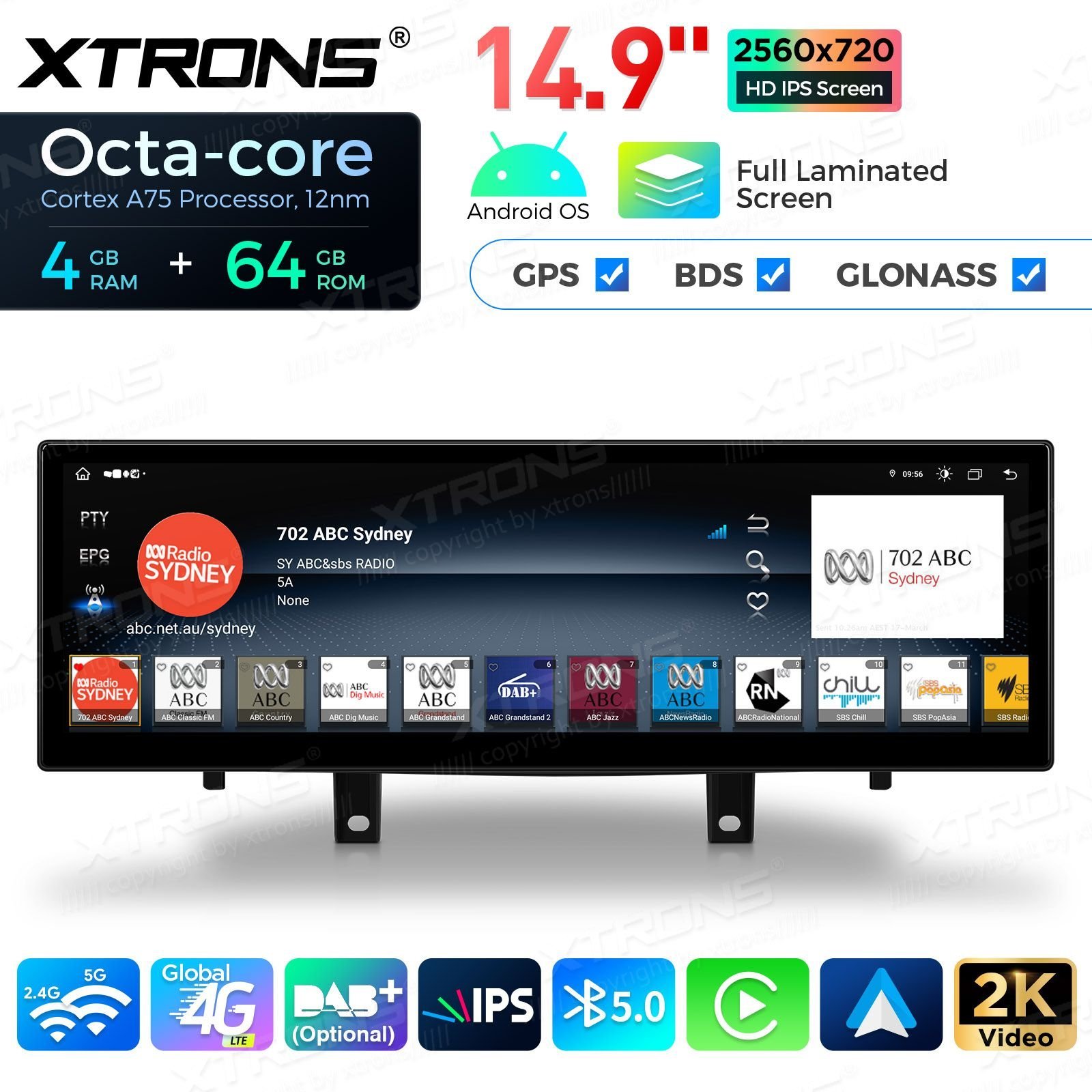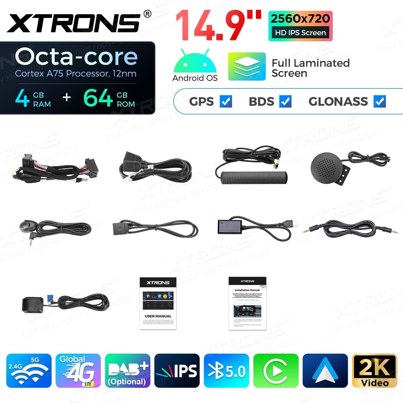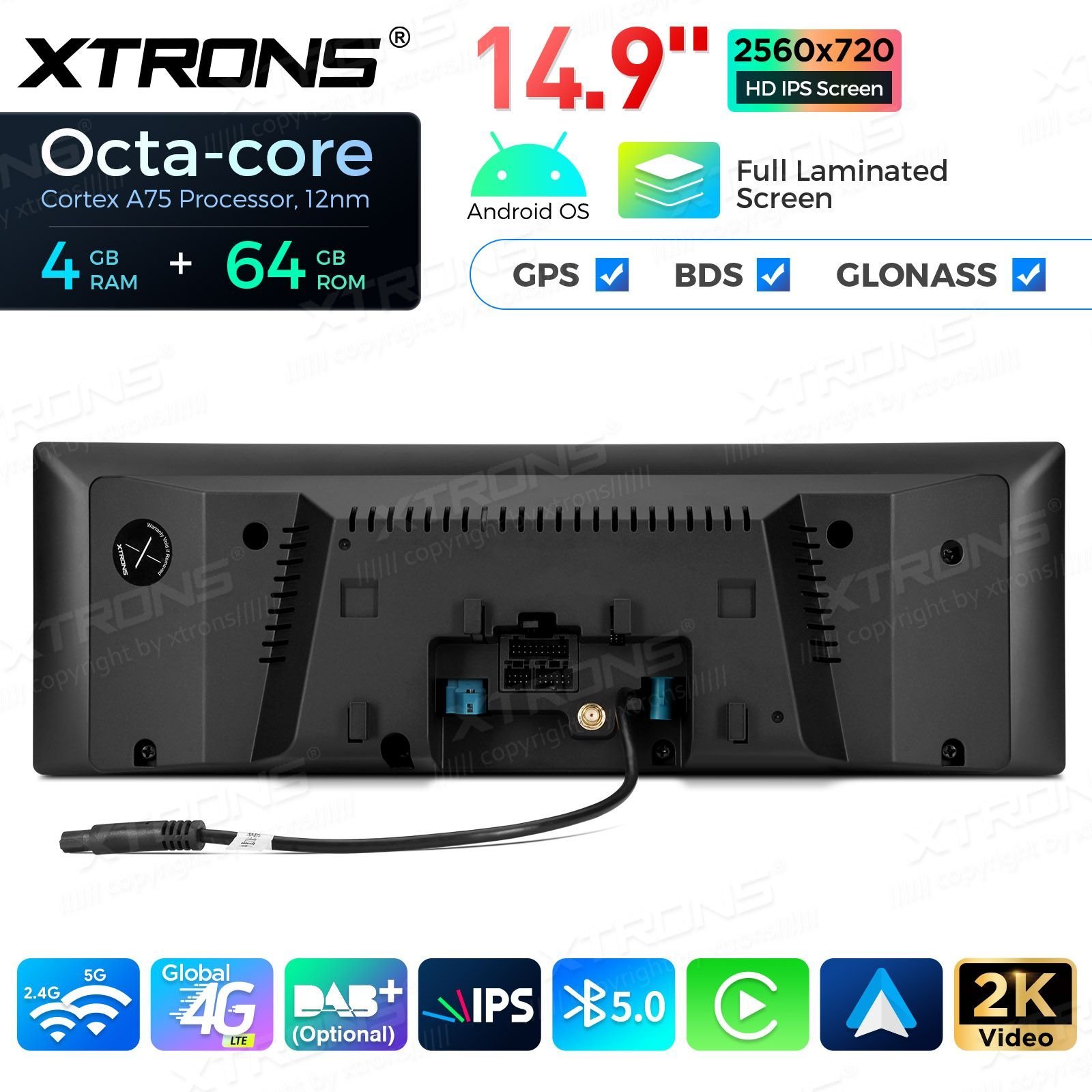 * 14,9" exkluzívny ultra-tenký dizajn * 2560×720 Super veľký IPS 2.5D G+G Grade-A displej * Plne laminovaná anti-glare obrazovka * Android 14 Cortex A75*2+A55*6 12nm procesor * Octa-Core LPDDR4 4GB + 64GB ROM SSD * Globálne 4G LTE (podpora 99 % operátorov) * Stylové užívateľské témy * Vstavaný bezdrôtový CarPlay a bezdrôtový aj káblový Android Auto * Funkcia zrkadlenia obrazovky * Podpora AHD cúvacej kamery * Anglický a nemecký manuál a inštalačný sprievodca * Zachovanie pôvodných funkcií: iDrive systém, zosilňovač, originálne rádio, CD prehrávač, Bluetooth, záložný displej kamery, ovládanie volantu * Nastaviteľný DSP * Presná GPS navigácia * Bluetooth 5.0 * Dual-band Wi-Fi (2,4 GHz & 5 GHz) * Sdílení mobilných dát cez USB tethering * Prehrávanie 2K videí * Multitaskingový displej * PIP (obraz v obraze) * 2 USB vstupy * V cene externý mikrofón * Rozšírené funkcie s príslušenstvom XTRONS (voliteľné): DVR, kamera, OBD, TPMS, DAB