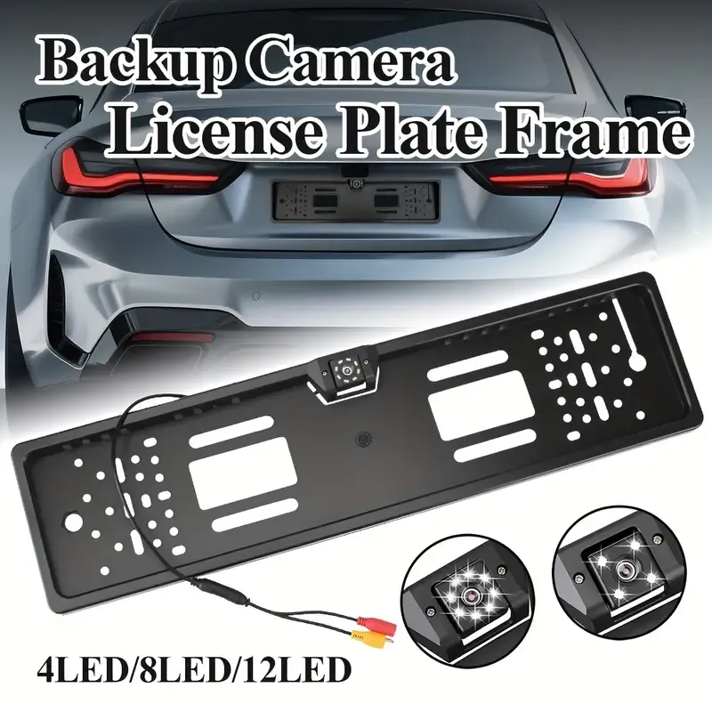 Univerzální couvací kamera - Kamera SPZ typu EU, Širokoúhlá zadní kamera, pozorovací úhel 140°, CMOS snímač, vodotěsná, noční senzor, LED podsvícení, kompatibilní s evropskými registračními značkami.