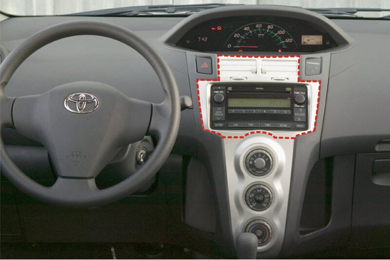 Rozměry otvoru odpovídají rozměrům čelního panelu 2DIN autorádií Kenwood, Alpine, Clarion, Pioneer, Macrom....