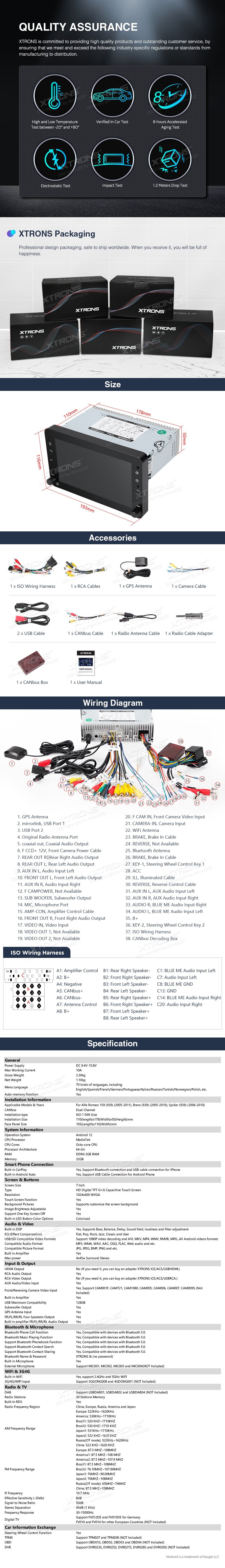 * Android 12 Octa Core Processor s 2GB RAM (DDR4), 32GB ROM (SSD) * Vestavěné bezdrátové a kabelové CarPlay a kabelové Android Auto * Duální uživatelské rozhraní přepínatelné * Vynikající Koaxiální Audio výstup * Premium Dual Layer G + G IPS dotyková obrazovka -7-palcové rozlišení 1024 * 600 * Hardware automatického stupně -STMicroelectronics TDA7708 Rádio -STMicroelectronics TDA7388 Zesilovač * Duální pásmo WiFi modul (2.4GHz a 5GHz) * Vestavěný DSP * Okamžitý přístup ke kameře, podpora fotoaparátu AHD * Podpora 1080P Video * Podpora 32/64 bitových aplikací *4 * 45watt výstup *Poslední Bluetooth 5.0 *Optimalizované CANbus Dekódování * Ovládací prvky volantu * Vestavěné dva USB porty * Zrcadlení obrazovky * Multitask s rozdělenou obrazovkou *Prémiové hliníkové chladiče *Povolen režim PIP *Přesná GPS navigace *Volitelné funkce (potřebné příslušenství) -3G/4G Internet, OBD, kamera, DVR, DAB +, TPMS, HD výstup, RCA výstup, mikrofon a klávesnice