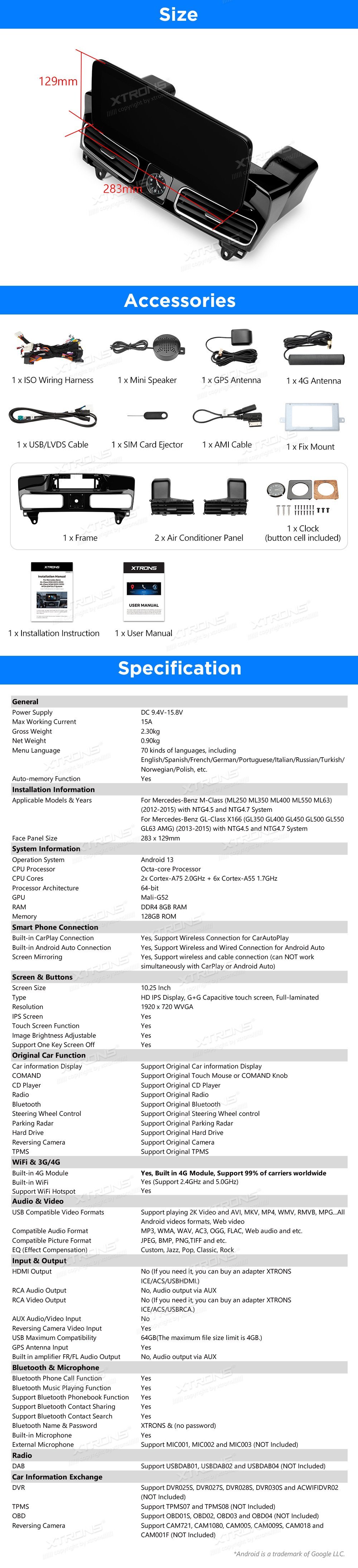 1. Tato jednotka pracuje POUZE s vozy Mercedes-Benz třídy ML W166 a GL třídy X166, které jsou dodávány s NTG 4.5 nebo NTG 4.7.: