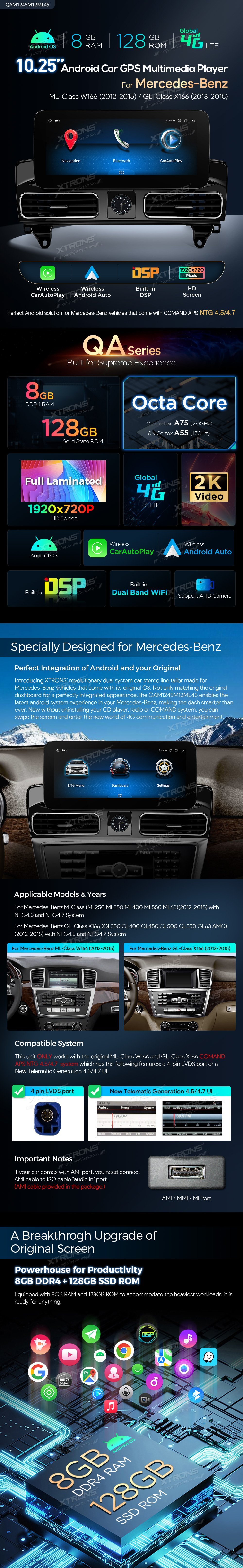 10.25 Inch Android Octa Core 4GB+64GB auto GPS multimediální přehrávač pro Mercedes-Benz třídy ML (2012-2015) / GL-Class X166 (2013-2015)