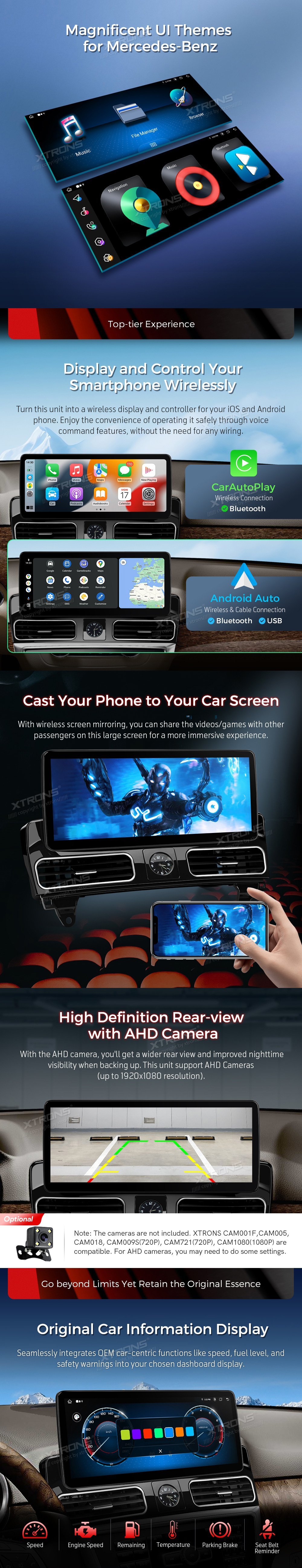 * 12,3 palcový exkluzivní nový koncept ultratenký design * 1920 * 720 Super velký IPS 2.5D G + G Stupeň A obrazovka * Plně laminovaná anti-oslněná obrazovka *Android 14 Cortex A75 * 2 + A55 * 6 12nm Proces *Octa-Core LPDDR4 4GB + 64GB ROM SSD *Globální 4G LTE (Podpora 99 % dopravců po celém světě) * Stylová UI Témata * Built-in bezdrátové CarPlay a bezdrátové a kabelové Android Auto * Zrcadlení obrazovky * Podpora AHD kamery *Anglická a německá uživatelská příručka a návod k instalaci *Původní informační displej automobilu * Původní funkce zůstaly zachovány -Podporovat COMAND Control -Podpořte SWC -Podporovat tovární kameru -Podporovat tovární CD přehrávač -Kompatibilní se zesilovačem optických vláken * Vestavěný DSP