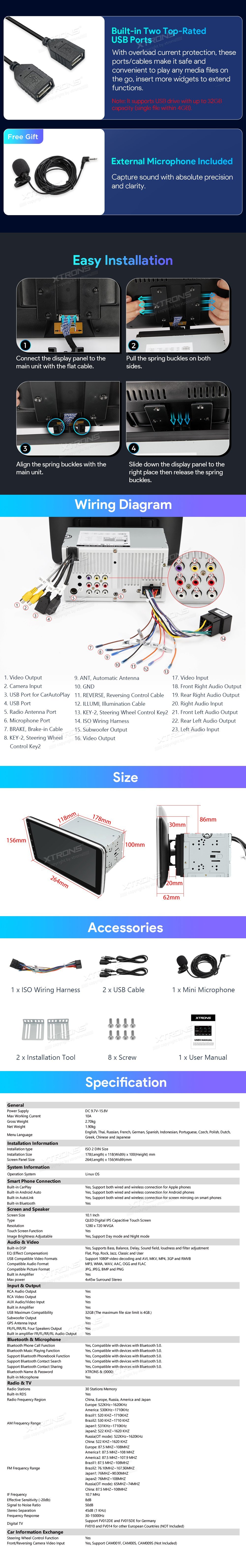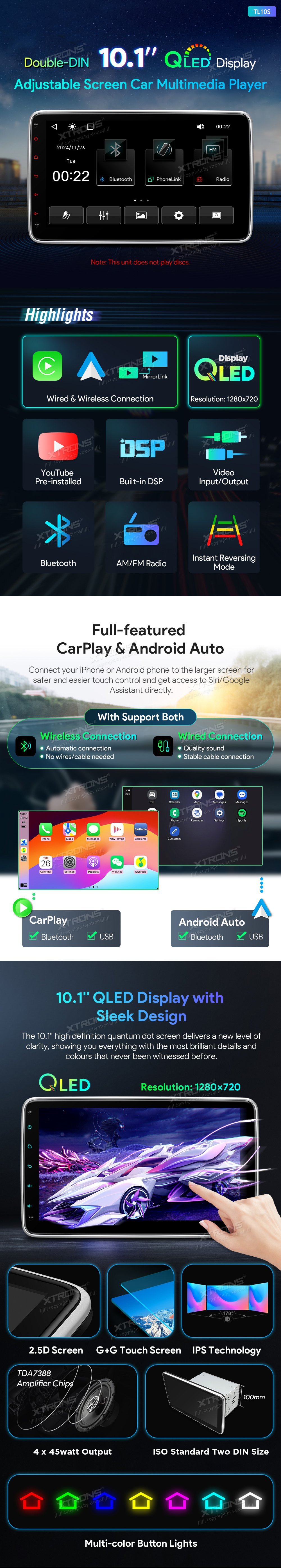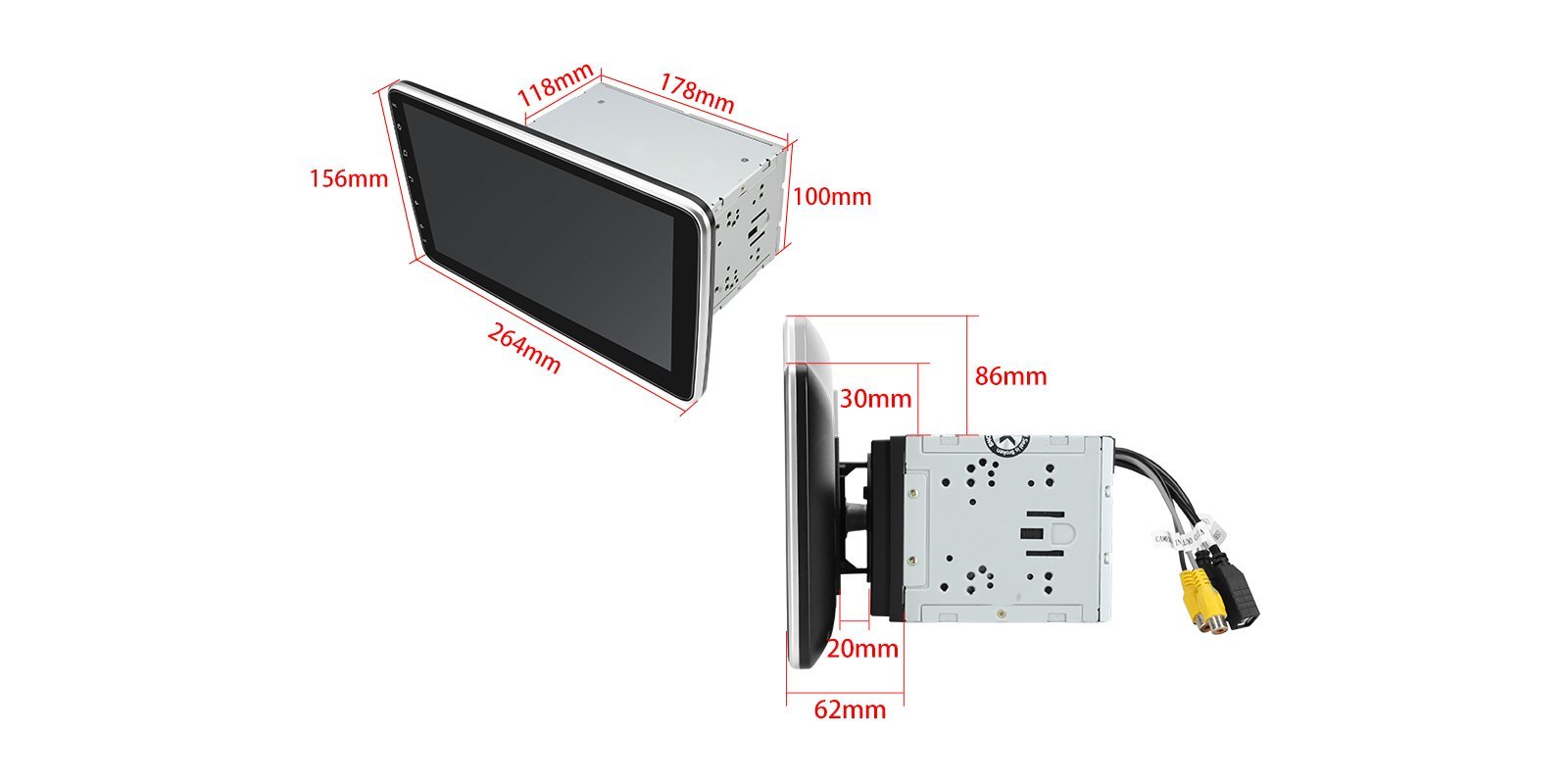 Univerzální 2 DIN autorádio - 10.1" HD dotykový displej, Android, GPS, DAB, Bluetooth, RDS, USB, DVD, slot pro SD kartu.