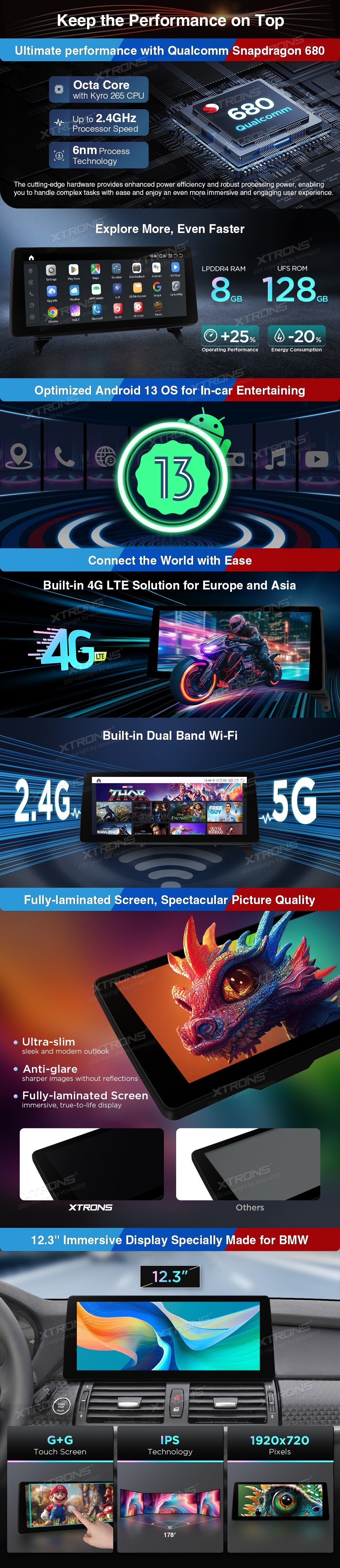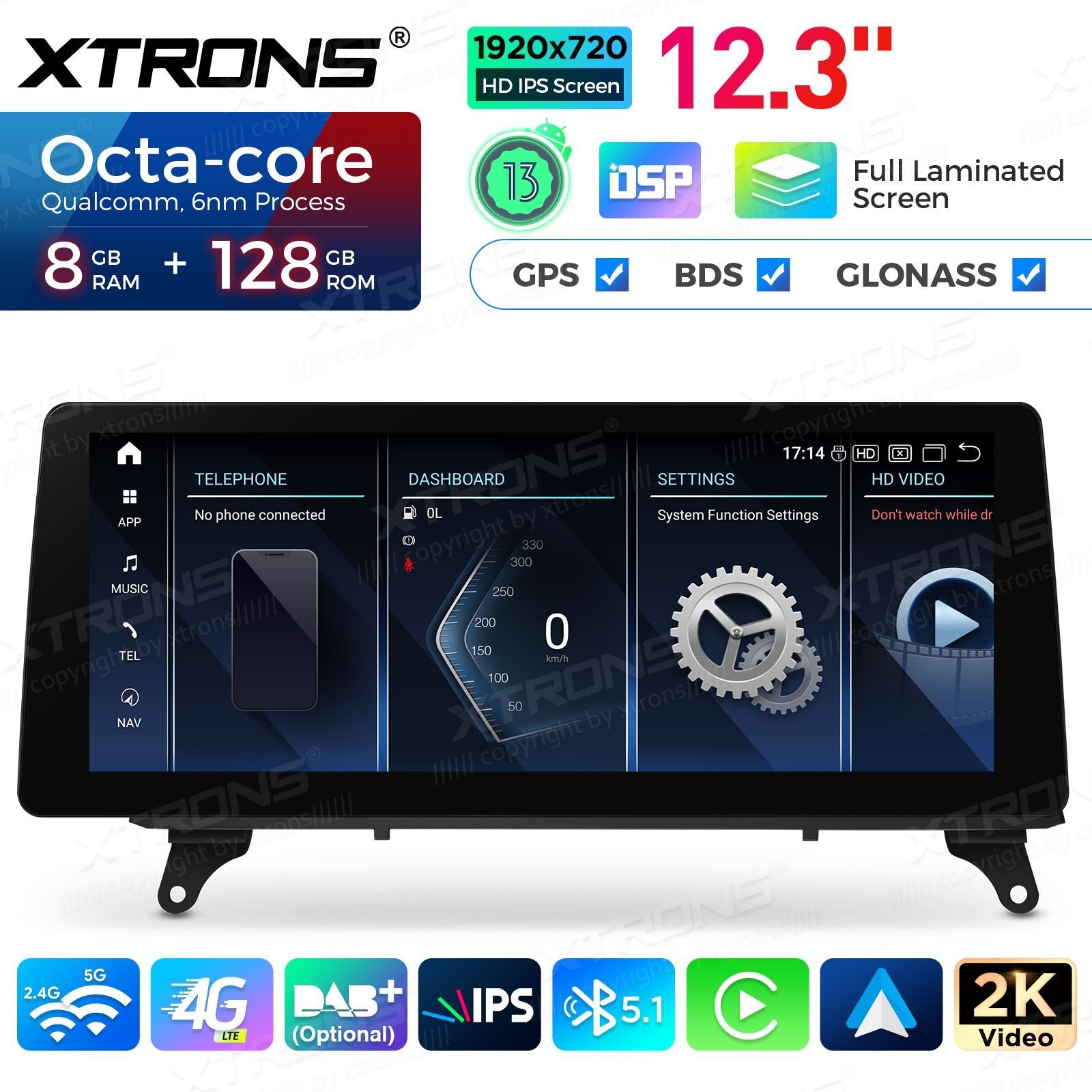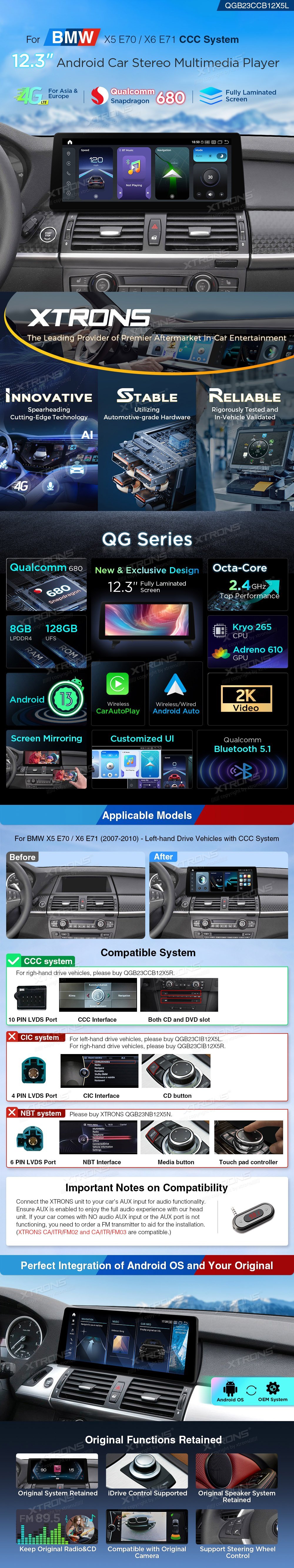 Autorádio pro vozy BMW X5 E70 / X6 E71 CCC - 12,3" HD dotykový displej IPS, Android OS, osmijádrový procesor, operační paměť 8GB, vnitřní paměť 128GB, DSP, GPS, Wifi, Bluetooth, RDS, 4G, USB, slot pro SD kartu, CarPlay, AndroidAuto